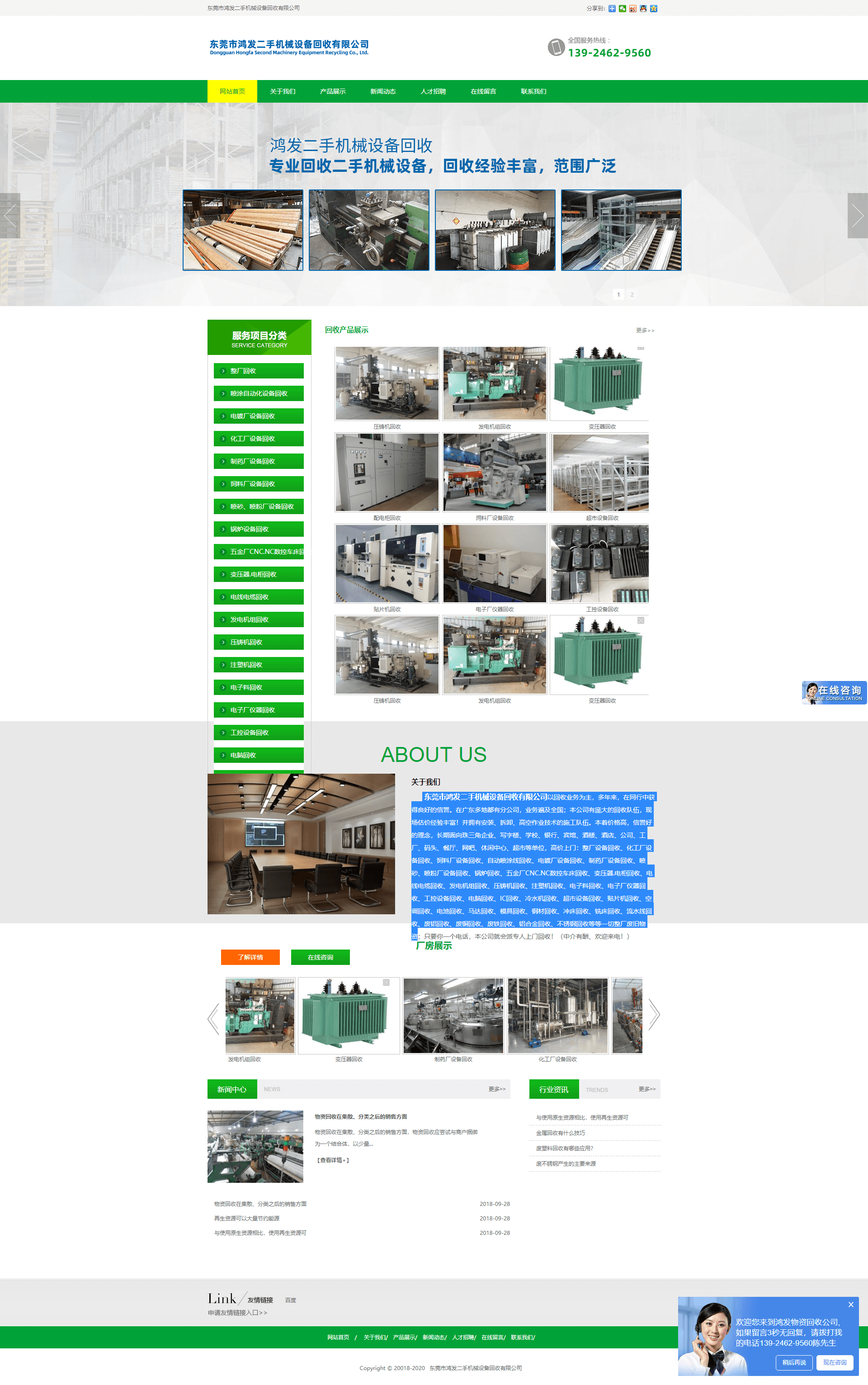 東莞市鴻發二手機械設備回收有限公司以回收業務為主,多年來,在同行中獲得良好的信譽。在廣東多地都有分公司,業務遍及全國;本公司有龐大的回收隊伍,現場估價經驗豐富!并擁有安裝、拆卸、高空作業技術的施工隊伍。本著價格高,信譽好的理念,長期面向珠三角企業、寫字樓、學校、銀行、賓館、酒樓、酒店、公司、工廠、碼頭、餐廳、網吧、休閑中心、超市等單位,高價上門:整廠設備回收、化工廠設備回收、飼料廠設備回收、自動噴涂線回收、電鍍廠設備回收、制藥廠設備回收、噴砂、噴粉廠設備回收、鍋爐回收、五金廠CNC.NC數控車床回收、變壓器.電柜回收、電線電纜回收、發電機組回收、壓鑄機回收、注塑機回收、電子料回收、電子廠儀器回收、工控設備回收、電腦回收、IC回收、冷水機回收、超市設備回收、貼片機回收、空調回收、電池回收、馬達回收、模具回收、鋼材回收、沖床回收、銑床回收、流水線回收、廢鋁回收、廢銅回收、廢鐵回收、鋁合金回收、不銹鋼回收等等一切整廠廢舊物資。