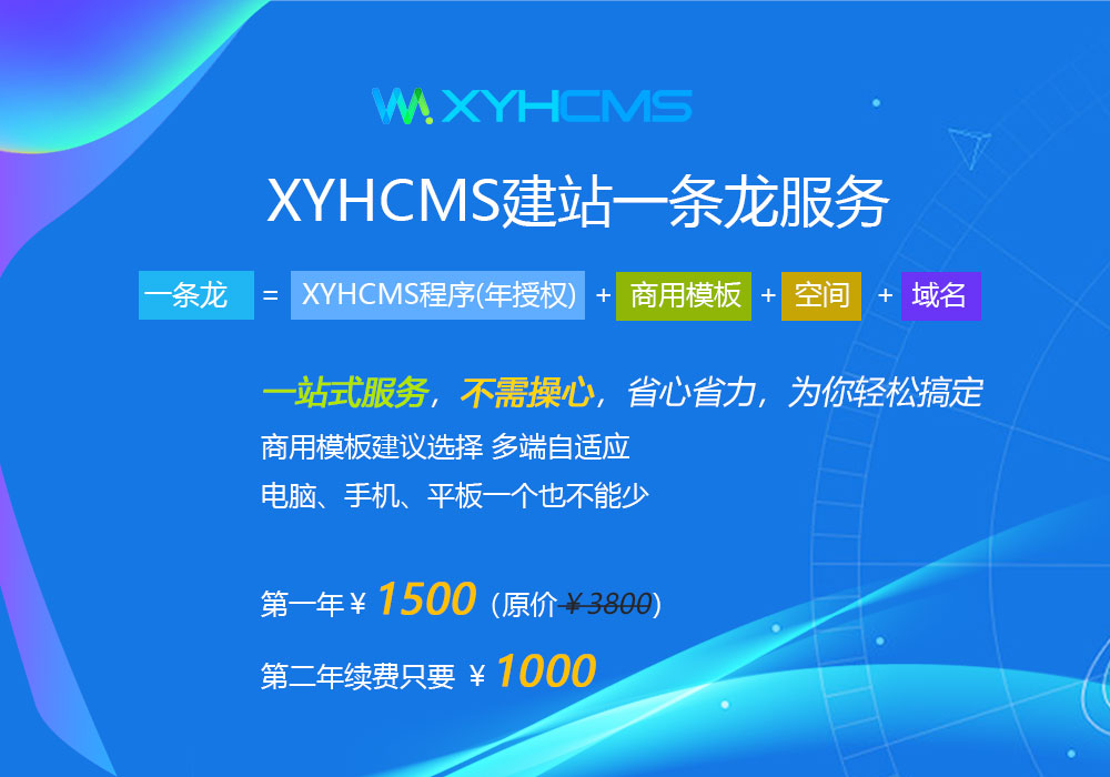 建站一條龍=XYHCMS程序(年授權(quán))+商用模板+空間+域名