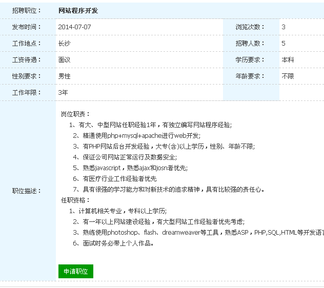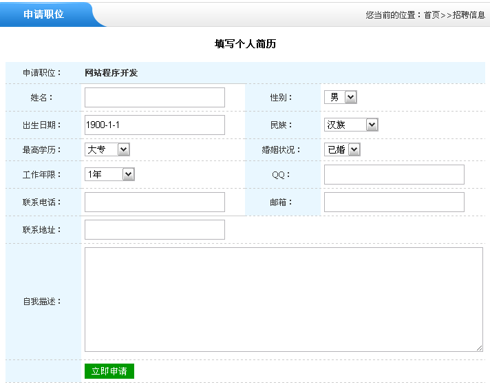 基于XYHCMS的插件,公司企業官網招聘必備,界面美觀大方,后臺方便管理。申請職位者可在線提交個人簡歷。